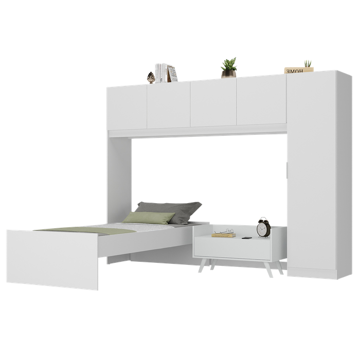 Cama de Solteiro com Guarda Roupa e Mesa de Cabeceira Retrô Dublin Multimóveis Mp4033 Branca