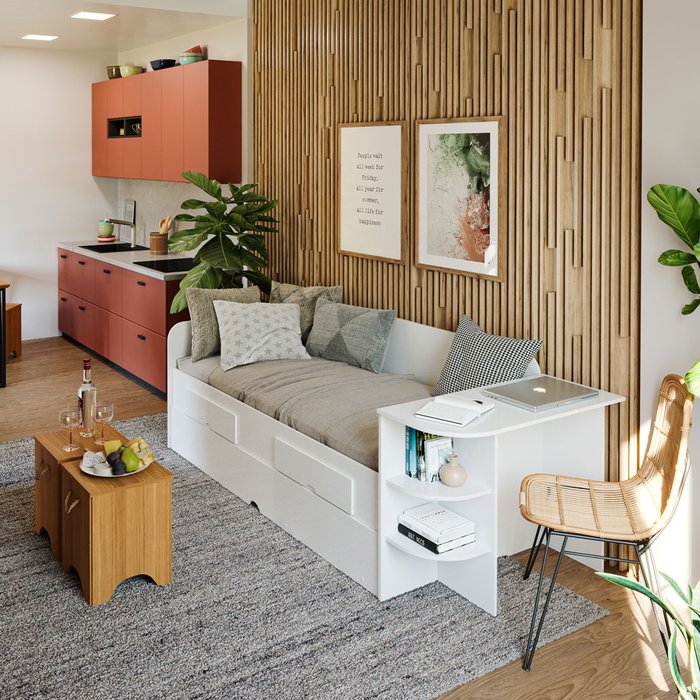 Cama de Solteiro com Mesinha e cama auxiliar Cimol Branco i Bicama