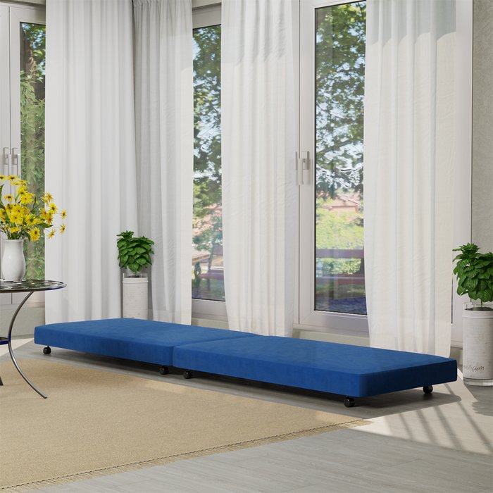 Cama Dobrável com Colchão 1,90x80cm Portátil Pés de Madeira Azul