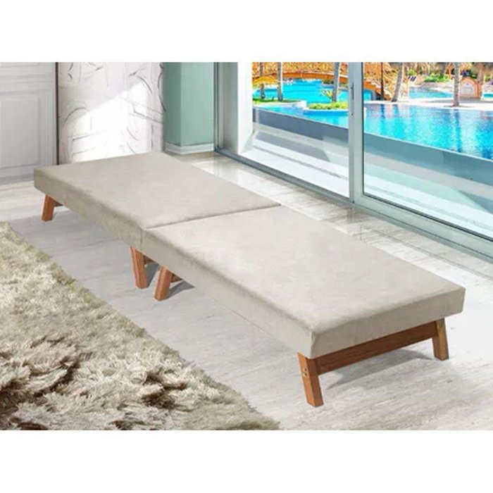 Cama Dobrável Pés De Madeira Maciça 1,70 X 0,60 Bege - Cor: Bege