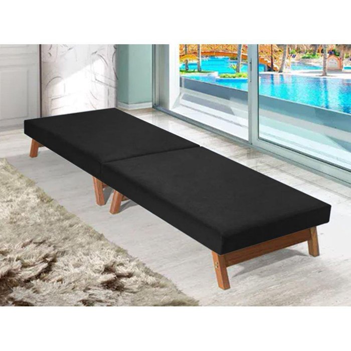 Cama Dobrável Pés De Madeira Maciça 1,70 X 0,60 Preto - Cor: Preto