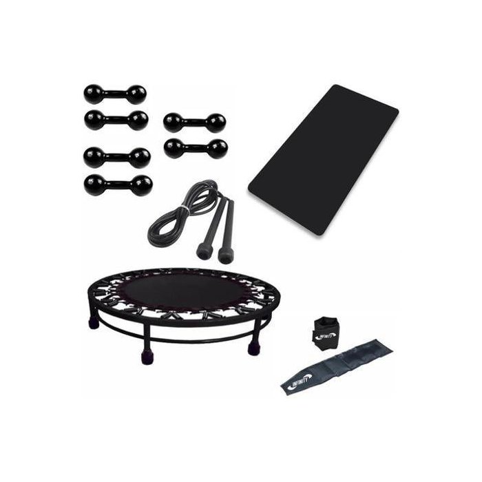 Cama Elástica + Colchonete + Corda + Caneleira + Kit Halter preto