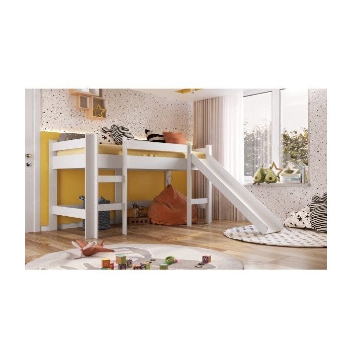 Cama Elevada Infantil com Escorregador Completa Móveis Branco