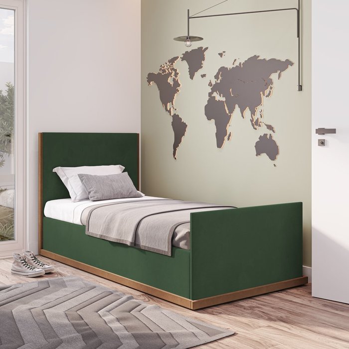 Cama Estofada Solteiro Hellen Veludo Verde VERDE