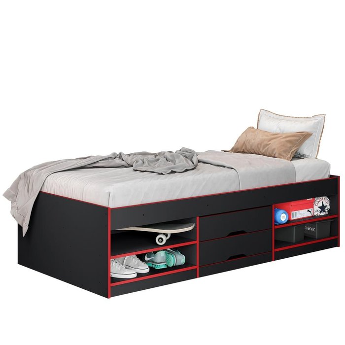 Cama Gamer Hero Com Gavetas Preto/vermelho Preto