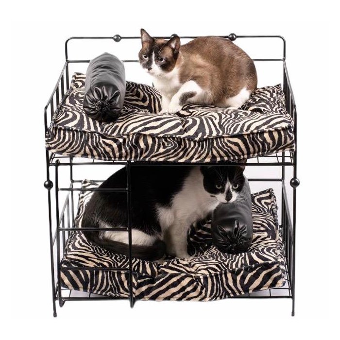 Cama Gatos Beliche M metal preto - gorgurão bege