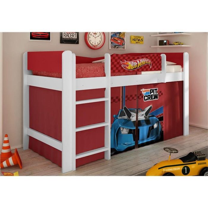Com a Cama da linha Hot Wheels Play a diversão vai ser garantida. Vem com cortina estampada para fazer a cabaninha e pode ser removida facilitando na hora da limpeza. Produto fabricado em MDF e contém um espaço para brincar em baixo da cama, estrado reforçado e barra de proteção lateral para maior segurança. Aproveite e leve o seu!