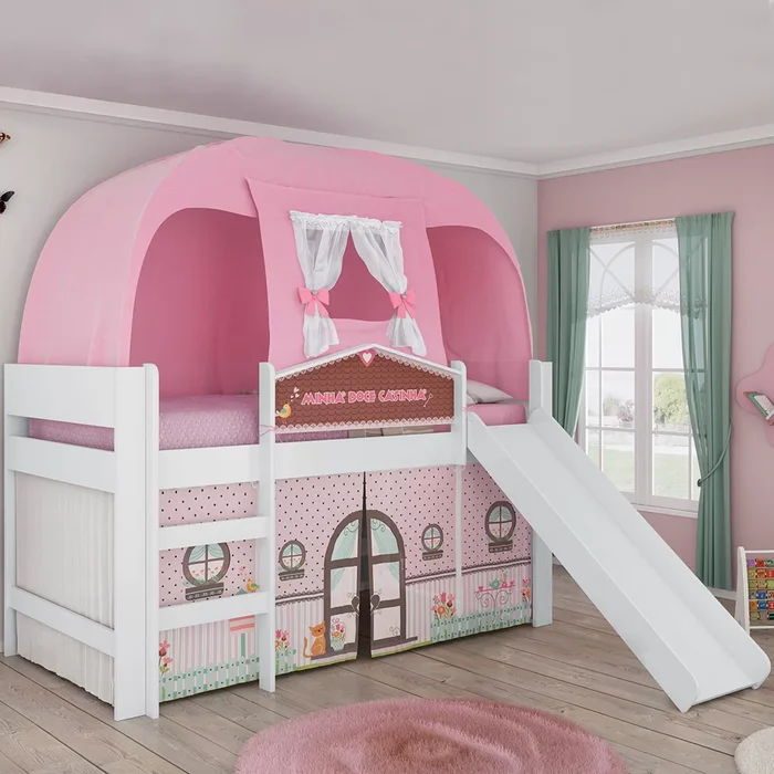 Cama Infantil com Escorregador e Barraca Minha Doce Casinha Play Pura Magia
