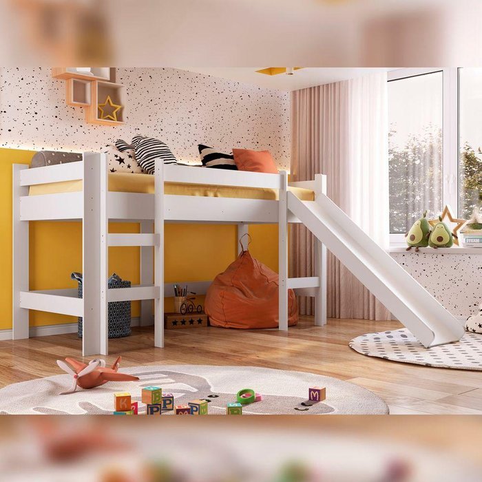 Cama Infantil Com Escorregador E Escada Para Menino E Menina Cor: Branco