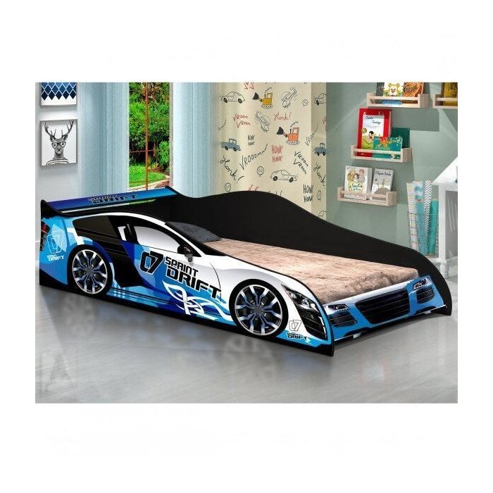 Cama Infantil com Proteção Lateral Carro Drift Azul