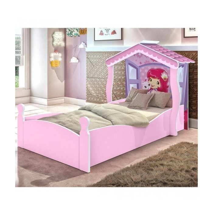 Cama Infantil com Proteção Lateral Casa Moranguinho J&A Móveis