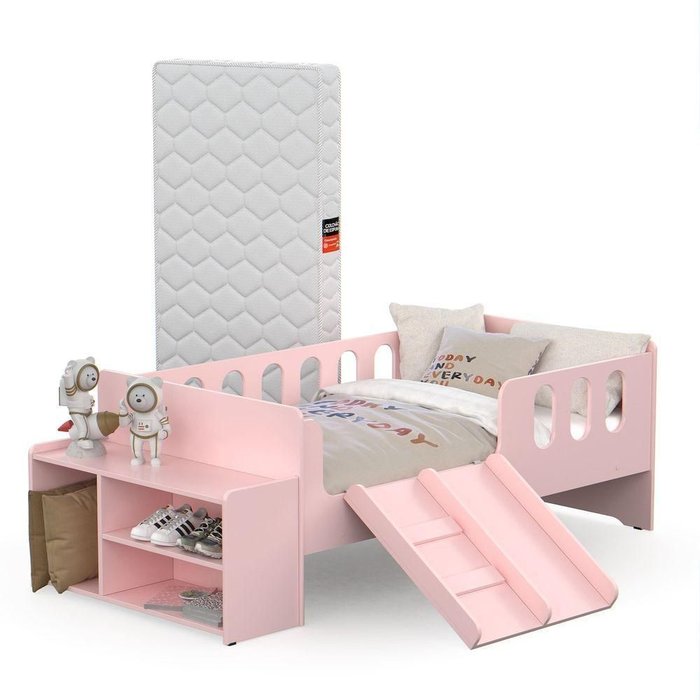 Cama Infantil Montessoriana Baby Conforto Com Colchão Juvenil Escorregador E Sapateira Quarto De Criança Menina Cor Rosa