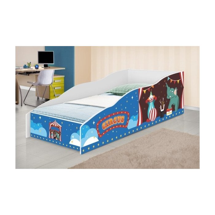 Cama Infantil Play Circo Picadeiro A cama, com adesivagem nos painéis, conta com design moderno e direcionado para o conforto, bem-estar e segurança da criança, conferindo um ambiente alegre, colorido e divertido. Bordas arredondadas evitando riscos de acidentes, Adesivos em Vinil de alta qualidade e resistência. Produzida em MDF, com pintura especial, proporcionando melhor acabamento e durabilidade em sua estrutura. Itens Inclusos 01 Cama. Kit completo para montagem, manual detalhado de instruções. Garantia 3 meses contra defeito de fabricação Instruções de Limpeza Limpar com flanela ou pano macio seco, não utilizar produtos abrasivos, álcool ou solvente. Não expor o produto diretamente à luz solar e à umidade. Medidas da Cama Altura: 49 cm Largura: 74 cm Comprimento: 163 cm Espaço para Colchão de 70cm por 150cm. (Não Incluso). Produzido 100% em MDF * Suporta até 50kg. Obs: A Cama é para Colchão tamanho Infantil (150 cm de comprimento). * Fácil Montagem * Apesar de fácil de montar, sugerimos a contratação de um montador profissional para a montagem do produto. Não nos responsabilizamos por avarias causadas no ato da montagem. * Não nos responsabilizamos pela montagem e desmontagem do produto no ato da entrega e devolução, assim como os custos gerados nestas situações. * A transportadora entregará o produto no andar térreo do endereço de entrega. * Não nos responsabilizamos por subir escadas, corredores e elevadores ou transporte por guincho em apartamentos. * Imagens meramente ilustrativas. * Objetos que compõem o ambiente das fotos não acompanham o produto.