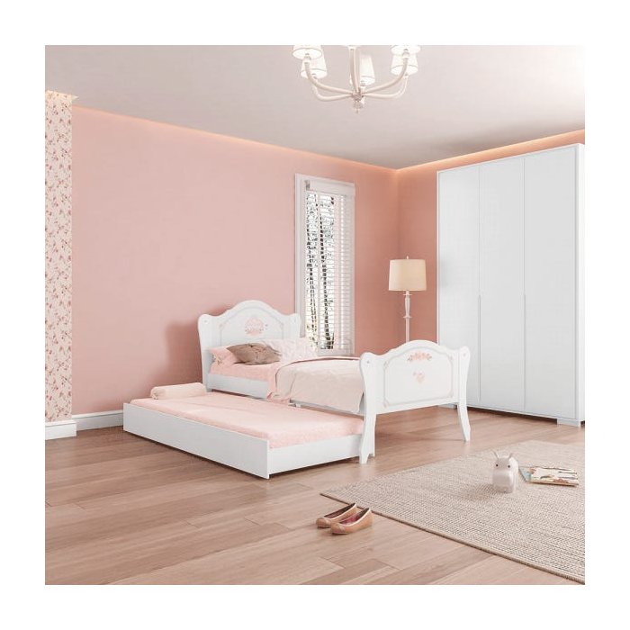 Romantismo e delicadeza, é o que descreve a Cama Princesa Encantada que traz todo o encanto do ambiente real para o quarto da sua princesa. A cama possui detalhes delicados como o aplique temático em formato de coroa e pedras decorativas, tornando o quarto da sua pequena em um ambiente alegre e repleto de romantismo. A cama auxiliar é um acessório indispensável para que as crianças possam receber os amiguinhos em casa para brincar.