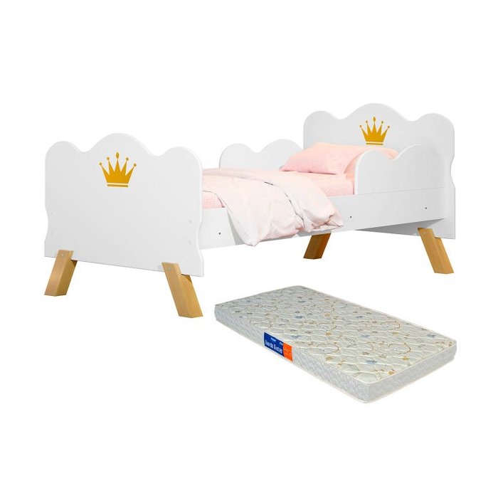 Cama Infantil Realeza Branco e Colchão Juvenil