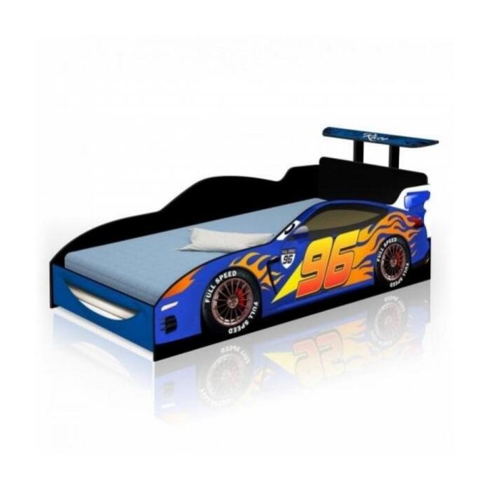 Cama Adesivada Solteiro Juvenil Carro Speed com Colchão - Azul