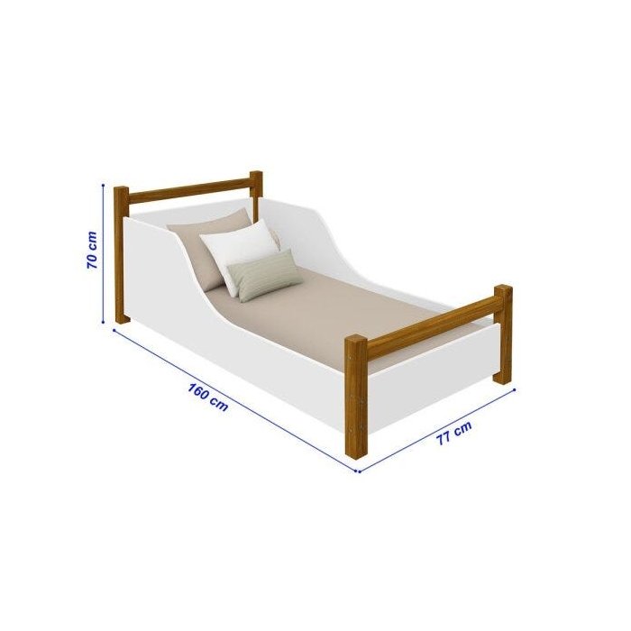 Cama Juvenil Luna Branco/Mel com Pés em Madeira