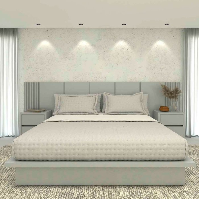 Cama King 2,01m Cabeceira 3,50m e 2 Mesas sob Medida em Mdf Cor:prata