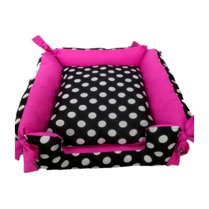 Cama Luxo Enchimento Silicone Lavável Preta Com Bolinhas