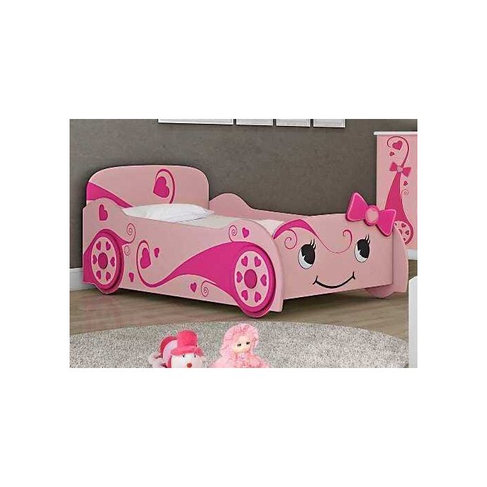 Cama Menina Rosa Bela, é o passaporte da sua princesa para noites de sonhos e aventuras. A cama temática e decorativa que da um toque especial. As noites de brincadeiras e sonhos de sua princesa serão muito mais divertidas e emocionantes. Sua estrutura é 100% em MDF, ripas e sarrafos em madeira, seu acabamento em Pintura UV acetinado e impressão das imagens direta no MDF (não possui adesivos), tornando-a um produto resistente e com aspecto de novo por muito mais tempo. As laterais que funcionam como grades de proteção torna a noite da sua filha muito mais segura. Além dessas grandes vantagens a cama Bella é um produto que ocupa pouco espaço no ambiente. É uma excelente escolha para acomodar colchões de solteiro na medida de 188 cm x 88 cm de largura. DIMENSÕES DO PRODUTO O QUE FAZ DA BELLA UM PRODUTO EXCLUSIVO? INFORMAÇÕES COMPLEMENTARES Colchão não incluso; Os objetos que ambientam as fotos não acompanham o produto; O produto será entregue desmontado; É de inteira responsabilidade do cliente a montagem do produto e/ou instalação, assim como possíveis avarias provenientes de manuseio inadequado; Embora o produto acompanhe o manual de montagem, verifique a complexidade antes de decidir montá-lo sozinho, o produto é de fácil montagem, mas recomendamos que contrate um profissional de sua confiança; Fique atento, nossas cores podem sofrer alterações dependendo do seu monitor.