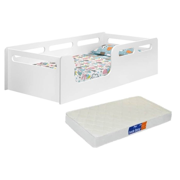 Cama Montesoriana Juvenil C/ Colchão Branca 100%mdf