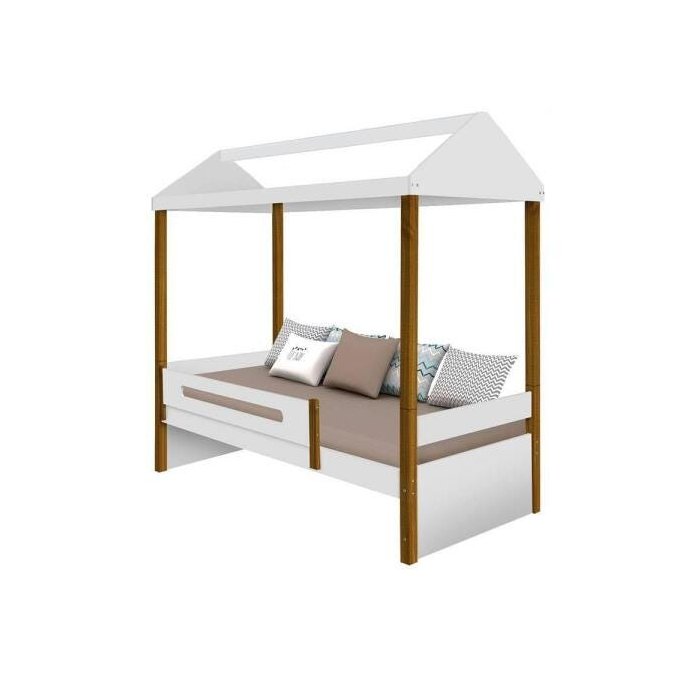 Cama montessoriana com casinha Sara Branco e Mel Solteiro