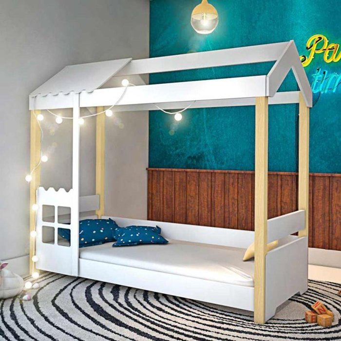 Cama Montessoriana Infantil com Led Livia Branca Branco