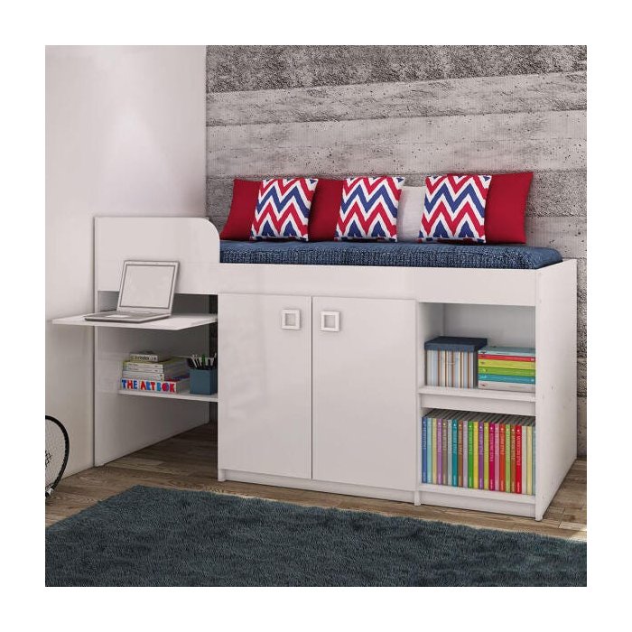 Cama Multifuncional com Escrivaninha Embaixo Branca Lilies Móveis