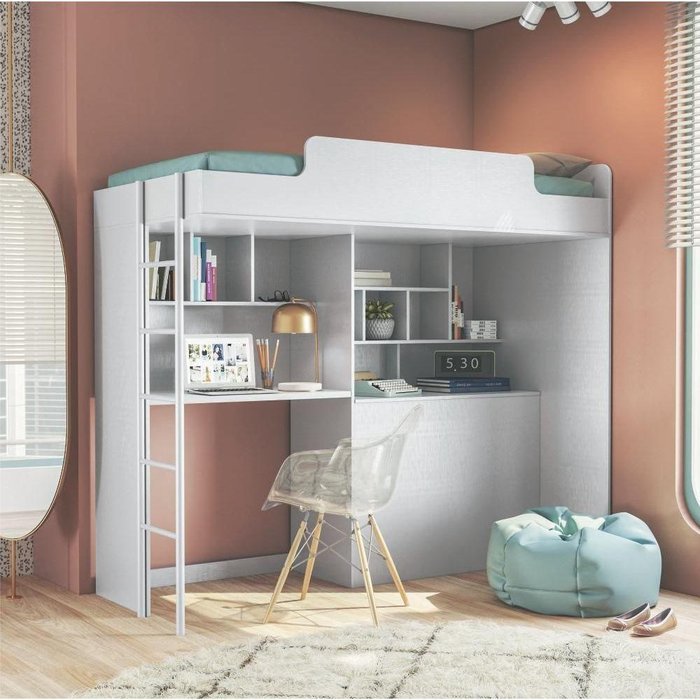 Esta cama multifuncional é um móvel super diferente, uma nova forma de deixar o ambiente com o estilo jovem e aproveitando da melhor maneira possível o espaço disponível no quarto! Ela que oferece 8 prateleiras e mesa acoplada para estudos e apoio para notebooks. A cama superior neste módulo conta com proteção lateral e suporta até 80 Kg (sem impacto) e com medida para colchão de 88cm Acompanha também escada metálica, baú para guardar travesseiros, lençóis, cobertores, etc. E finalizando, uma tomada 20 amperes, para carregar aparelhos eletrônicos NãO ACOMPANHA COLCHãO Dimensões do Produto: Altura: 176,5 cm Largura: 197,5 Profundidade: 92,5 cm Informações do Produto: Cor: Branco Material Principal: MDP Para colchões solteiro de 88cm Cama superior com proteção lateral Escada em metal Bancada para estudo Baú para guardar travesseiros, lençóis, cobertores, etc Tomada 20 amperes Nichos: Sim (9) Itens Inclusos: 01 Cama Multifuncional Manual de Montagem Kit completo para montagem e manual de instruções Garantia: 3 meses contra defeito de fabricação Informações Adicionais: - Fotos meramente ilustrativas do produto no ambiente. - Os objetos que ambientam as fotos não acompanham o produto; - Verificar descrição e tamanho do produto antes da compra. - Avaliar a mercadoria no ato do recebimento e recusar em caso de divergência ou avarias. - Mantenha as informações de contato e endereço de entrega atualizados para entrarmos em contato caso necessário. - Limpar com flanela ou pano macio seco, não utilizar produtos abrasivos, desengordurantes, álcool ou solvente. Não expor o produto diretamente à luz solar e à umidade. * Sugerimos a contratação de um montador profissional para a montagem do produto. Não nos responsabilizamos por avarias causadas no ato da montagem. * Não nos responsabilizamos pela montagem e desmontagem do produto no ato da entrega e devolução, assim como os custos gerados nestas situações. * A transportadora entregará o produto no andar térreo do endereço de entrega. * Não nos responsabilizamos por subir escadas, corredores e elevadores ou transporte por guincho em apartamentos. Peso do Produto (Kg): 113,9 | Comprimento do Produto (cm): 92 | Cor Predominante: Branco | Cores do Produto (FILTRO DE CORES): Branco | Material Principal: MDP | Instruções/Cuidados: Limpar com pano macio e seco, não utilizar produtos abrasivos. | Altura do Produto com Embalagem (cm): 25 | Largura Produto Com Embalagem (cm): 94 | Comprimento Produto Com Embalagem (cm): 197 | Produto precisa de Montagem?: Sim, a montagem é simples mas sugerimos a contratação do nosso serviço de montagem (para os CEPs em que o serviço está disponível) ou de algum profissional experiente de sua preferência | Descrição do Tamanho: Altura: 176,5 cm x Largura: 197,5 x Profundidade 92,5 cm | LARGURA PRODUTO COM EMBALAGEM (CM): 94 | COMPRIMENTO: Até 100 cm | COR PREDOMINANTE: Branco | MATERIAL PARA FILTRO: MDP | Largura do Produto (cm): 197 | MATERIAL PRINCIPAL: MDP | POSSUI COLCHÃO: Não | Estado de Origem: PR | Material para Filtro: MDP | Altura do produto (cm): 176 | Peso Produto Com Embalagem (Kg): 114,7 | Conteúdo da Embalagem: 1 Cama | PESO DO PRODUTO (KG): 114,7 | ALTURA DO PRODUTO COM EMBALAGEM (CM): 25 | LARGURA: Acima de 150 cm | CORES DO PRODUTO (FILTRO DE CORES): Branco | COMPRIMENTO PRODUTO COM EMBALAGEM (CM): 197 | PESO PRODUTO COM EMBALAGEM (KG): 114,7