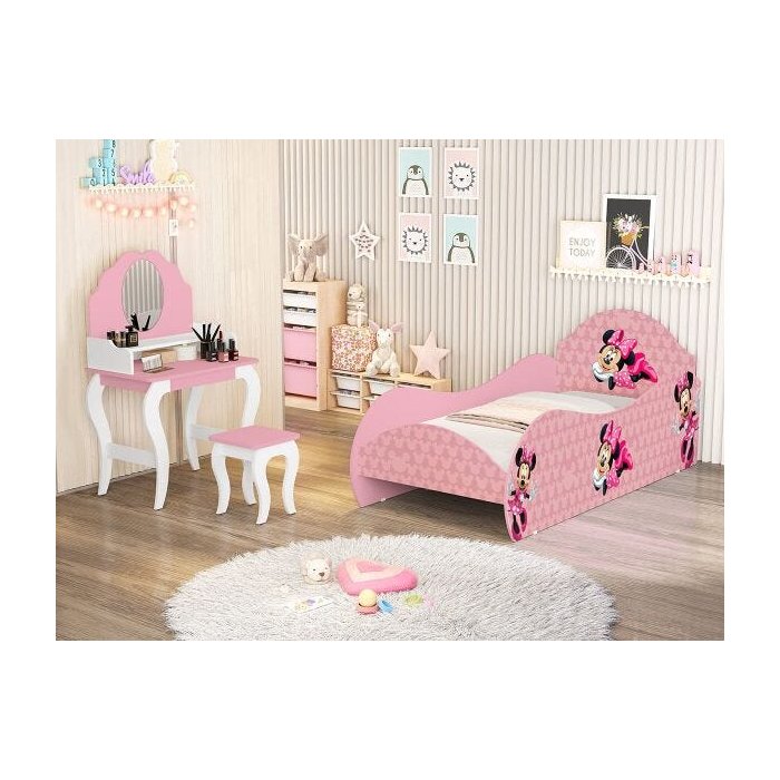 Cama, Penteadeira e Banqueta Minnie - Rosa Rosa