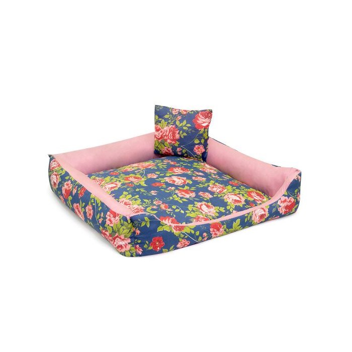 Cama Pet para Cachorro Menina Rosa Floral 50cm x 50cm x 15cm Decoralle com Almofada