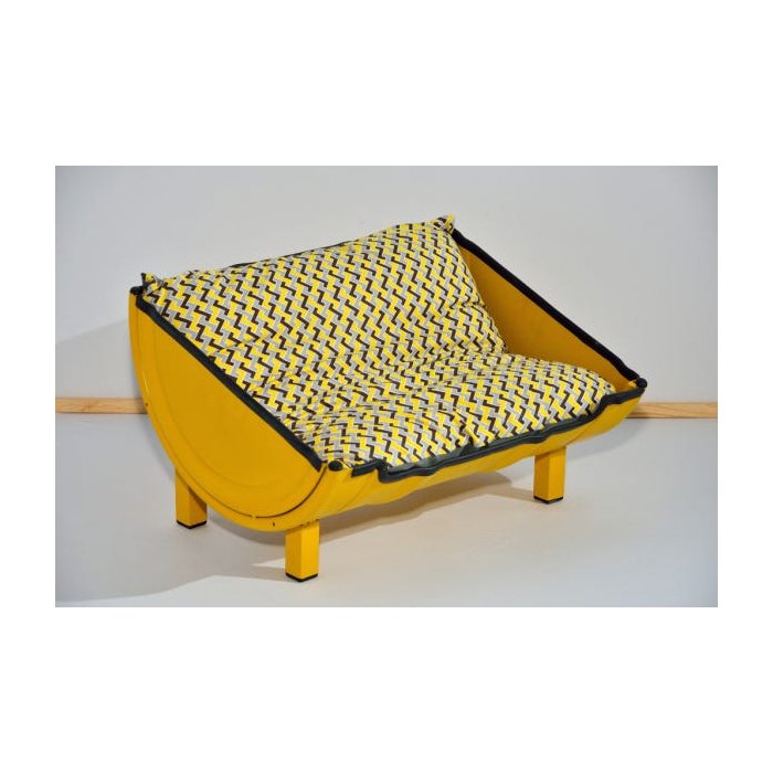 Cama para cachorro construída com tambor de óleo pequeno .Corpo pintado com tinta automotiva. Bordas protegidas com perfis de borracha. Estofado em tecido 100% algodão. Produto artesanal. Acabamento único. Pode apresentar diferenças entre as peças e em relação a foto.