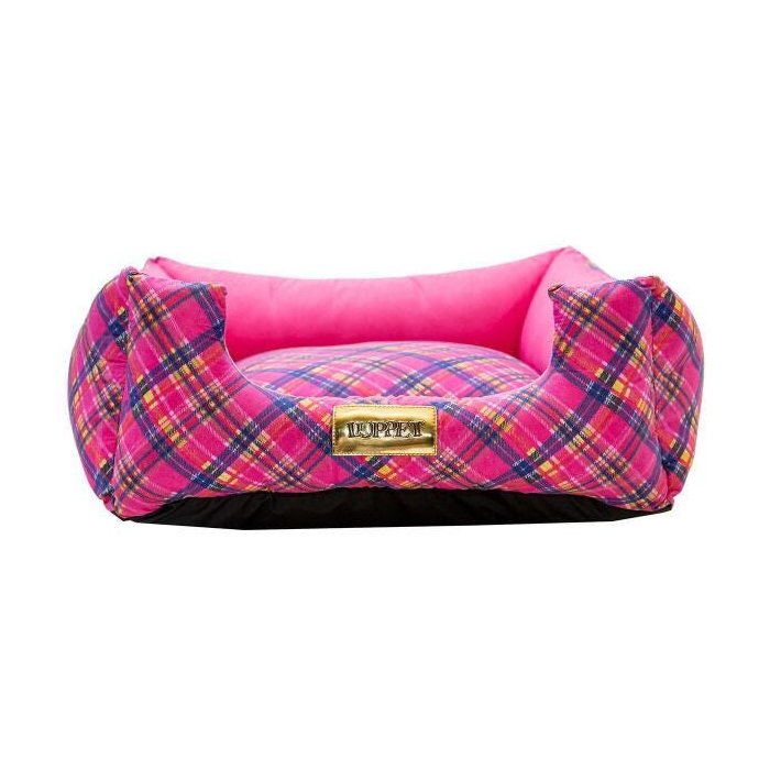 Cama Quadrada para Cachorro ou Gato Luppet Luxo Rosa Xadrez