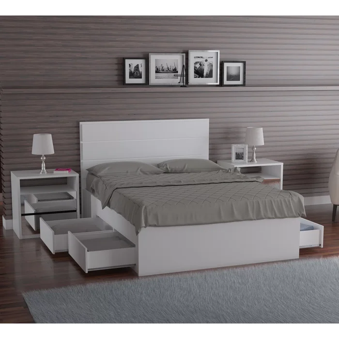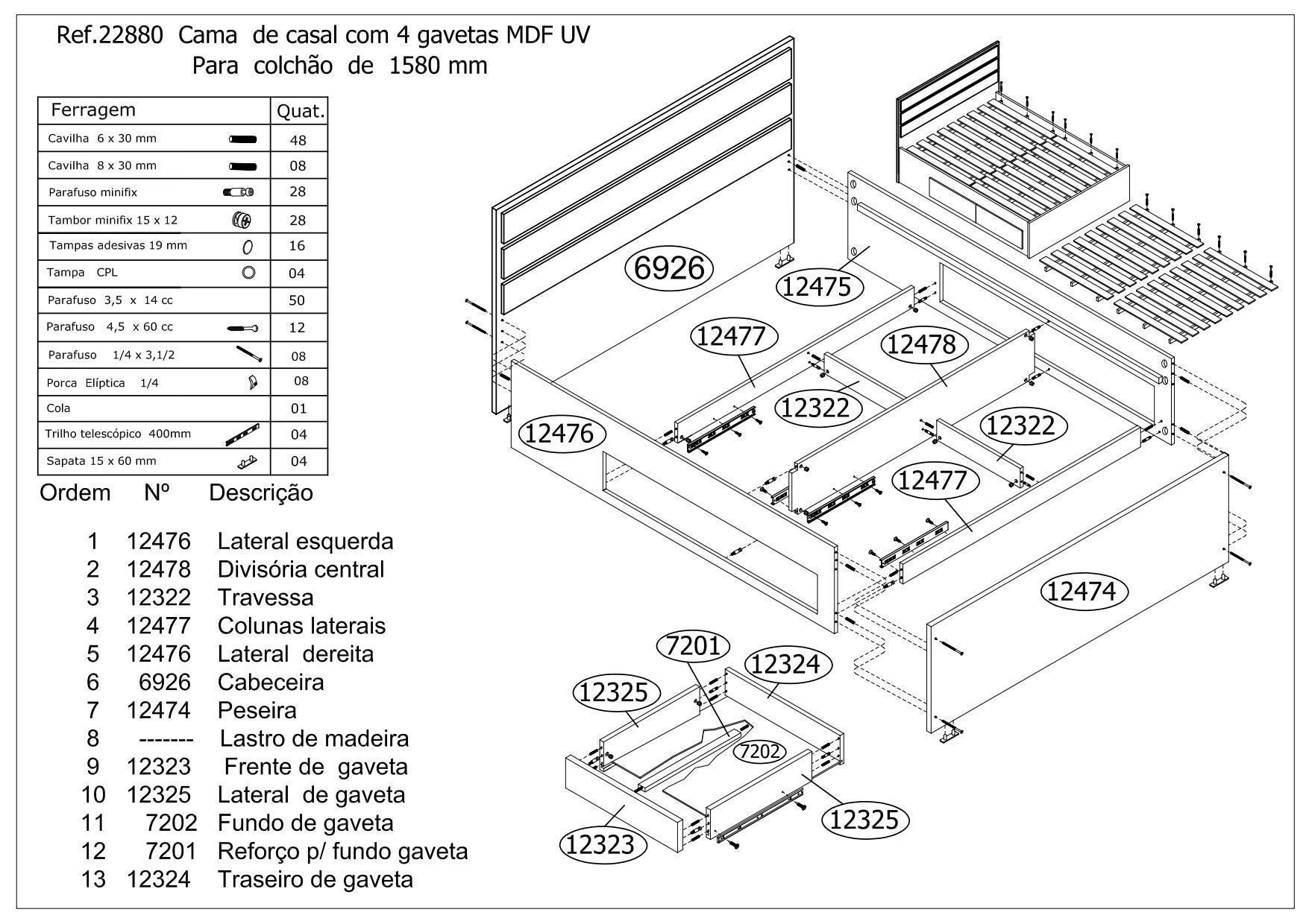 A Cama Queen Foscarini é ideal para colchões de Queen de 158 cm. É produzida 100% em MDF, com acabamento UV fosco/texturizado o que garante brilho e proteção em toda a superfície do móvel. Seu sistema de montagem é realizado através de parafusos, minifix e cavilhas. Sua estrutura principal é de 25mm e e possui 4 gavetas com corrediças telescópicas que proporcionam a abertura total. Ideal para agregar conforto e bem estar ao seu quarto. Aproveite.