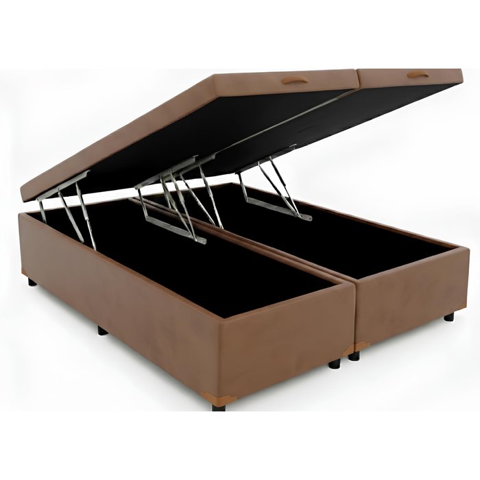 Cama Queen Box Baú Bi-partida 79 Blindada:corino Marrom/queen