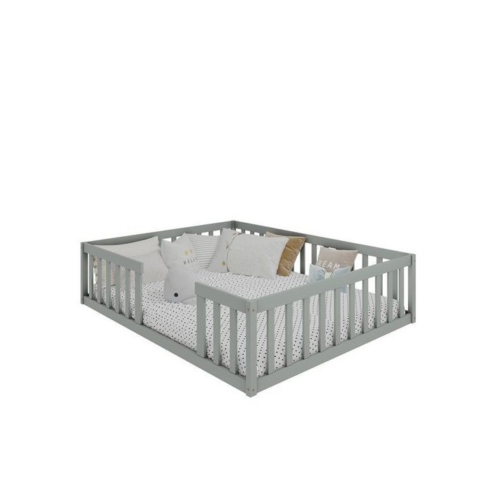 Cama Queen Montessoriane Com Grade Cinza A Cama Montessoriana é perfeita para garantir mais autonomia aos pequenos. Um projeto lindo produzido em madeira maciça, perfeito para trazer magia ao quarto e maior experiencia para nossas crianças.