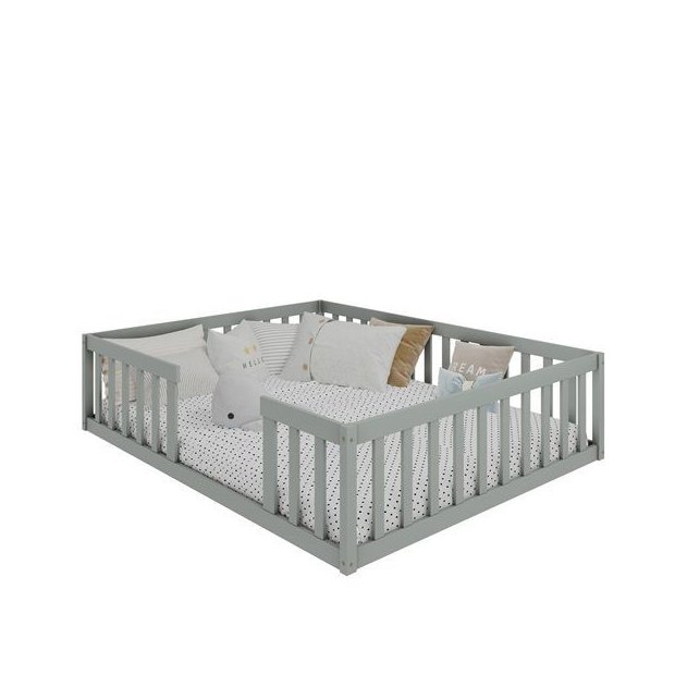Cama Queen Montessoriane Com Grade Cinza A Cama Montessoriana é perfeita para garantir mais autonomia aos pequenos. Um projeto lindo produzido em madeira maciça, perfeito para trazer magia ao quarto e maior experiencia para nossas crianças.