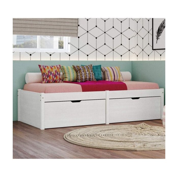 Cama Solteiro 2 Gavetas Madeira Maciça Beauty Inter Link Branco