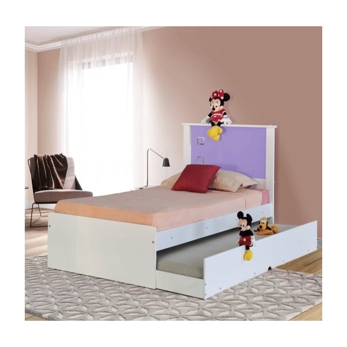 Cama Solteiro Barcelona Branca e Lilás com Auxiliar e Colchões