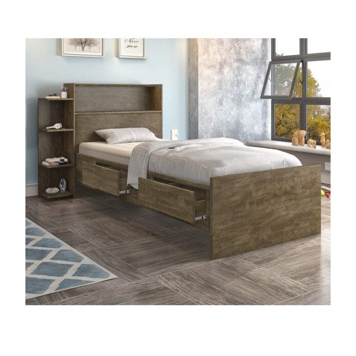 Cama Solteiro Baú 2 Gavetas Isa Cambel Castanho Wood