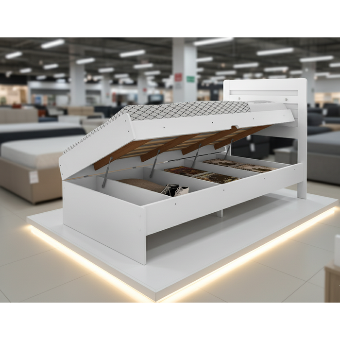 Cama Solteiro Baú com Auxiliar Larissa - Funcinal Prática - Branca