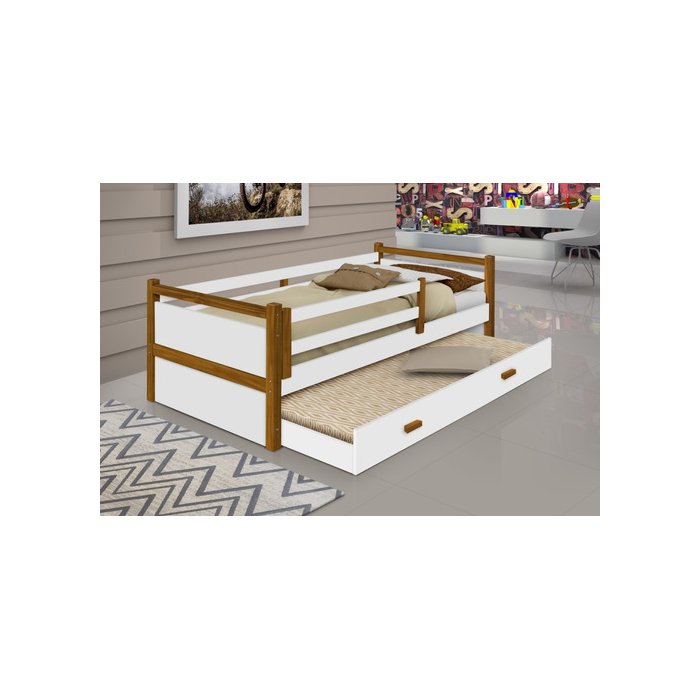 E uma cama solteiro branca auxiliar branco e mel - Divalotot