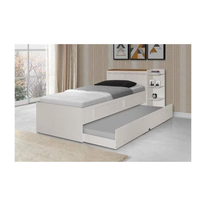Cama Solteiro Bibox Baú 2 Gavetas Off White Castanho 0,88 com Auxiliar Novais Gabrielli