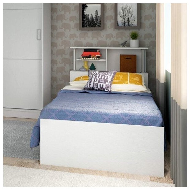 Cama Solteiro Cabeceira com Nicho Prateleira Console 7150A Versátil Complemento Móveis Castro Branco TX