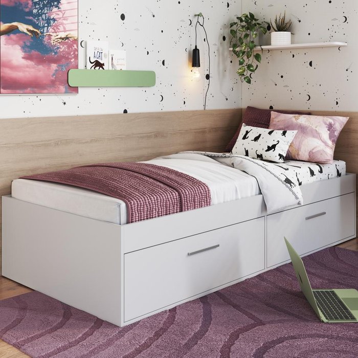 Cama Solteiro com 2 Portas 80 Tókio Branco