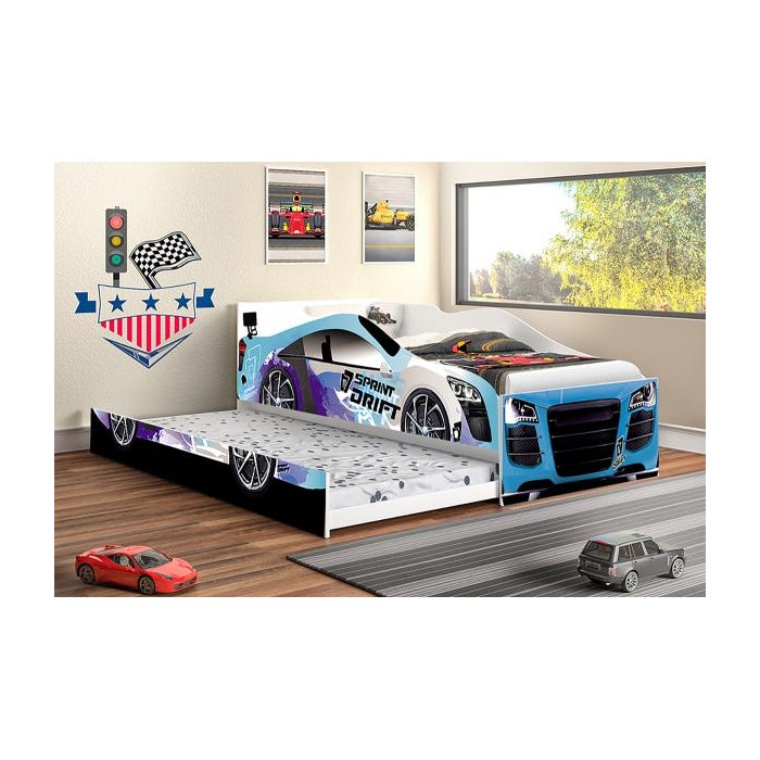 Cama Solteiro com Auxiliar Drift Azul C / Colchão