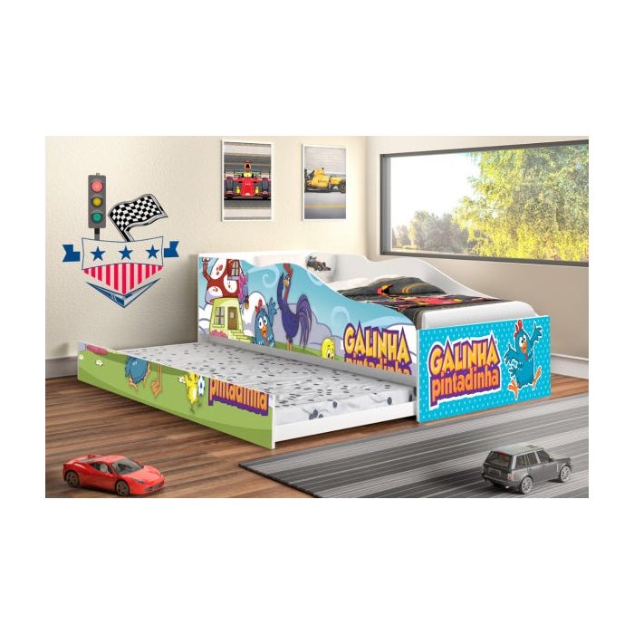 Cama Solteiro com Auxiliar Galinha Pintadinha, com 1 Colchão