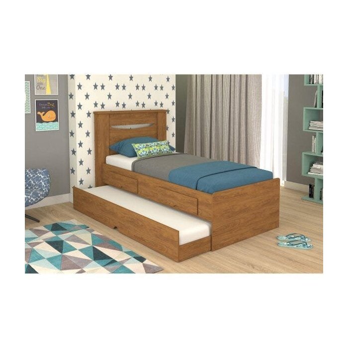 Cama Solteiro com Baú Barbara Cimol Savana/Branco