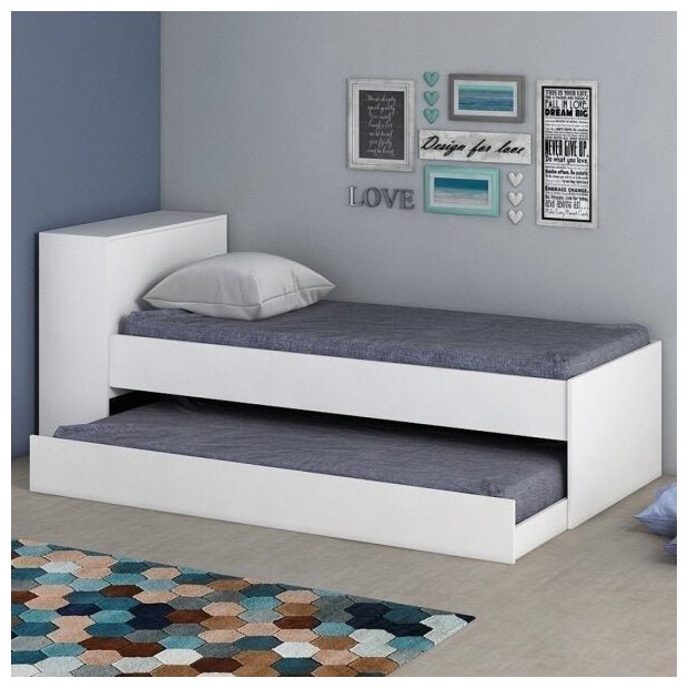 O baú integrado é um verdadeiro tesouro, ideal para armazenar lençóis, travesseiros e tudo o que você precisa para manter seu espaço organizado. Já a cama auxiliar, com as mesmas dimensões da cama principal, desliza suavemente sobre rodízios, facilitando seu uso diário.