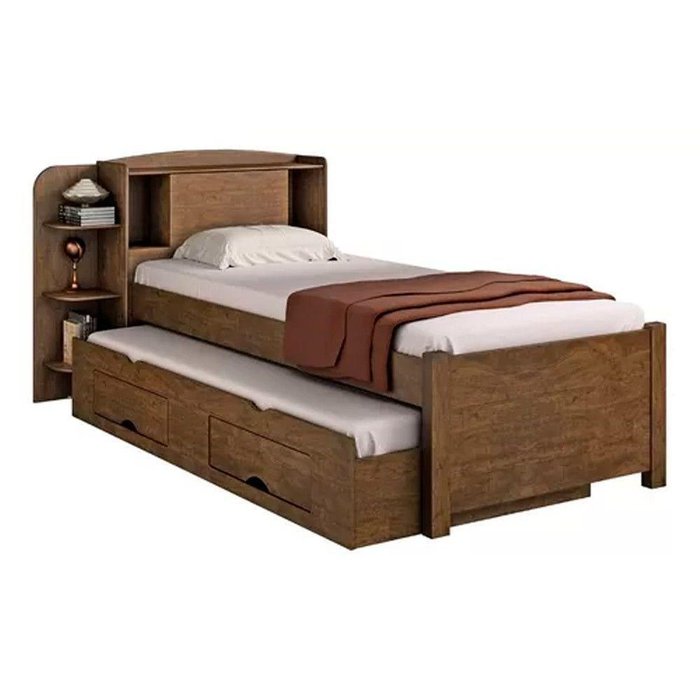 Cama Solteiro com Cabeceira Baú e Box Auxiliar Ddoro Móveis Marrom
